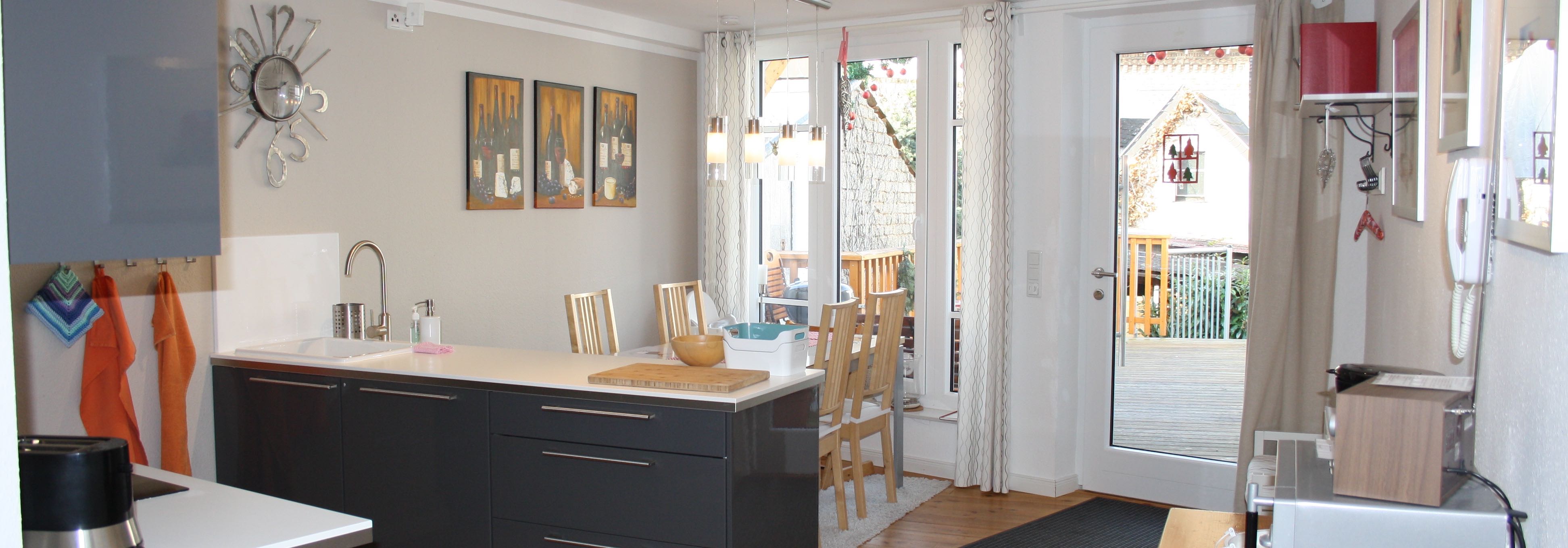 Die gemütliche Ferienwohnung (65 qm) befindet sich inmitten der Altstadt von Ahrweiler. Von der großen Terrasse haben Sie einen herrlichen Ausblick in die Weinberge und den Rotweinwanderweg. Es erwartet Sie ein liebevoll eingerichtete Wohnnung mit einer modernen, voll ausgestatteten Küche; ein schnuckeliges Schlafzimmer; ein lichtdurchflutetes Wohnzimmer und ein großes Bad.